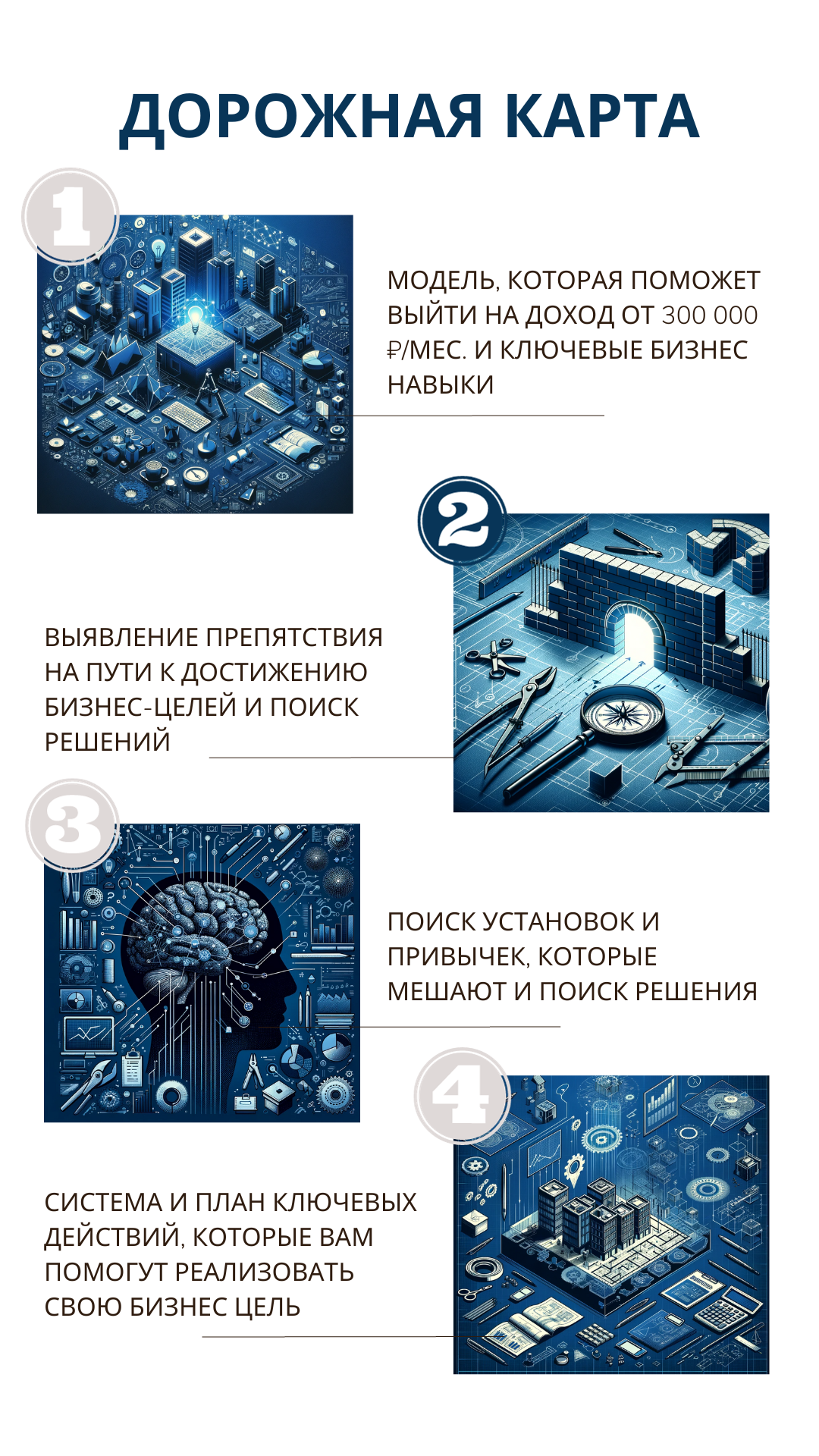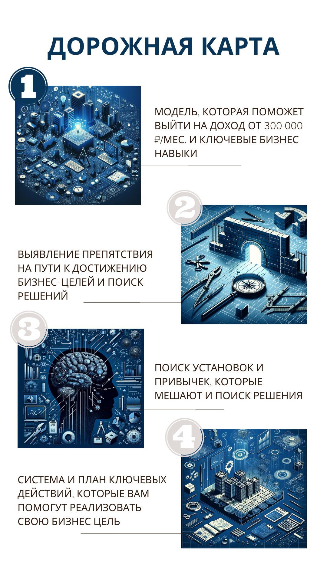 Познакомитесь с системой и определите план ключевых действий, которые вам помогут реализовать свою бизнес цель и выйти на доход от 300.000 р/м.